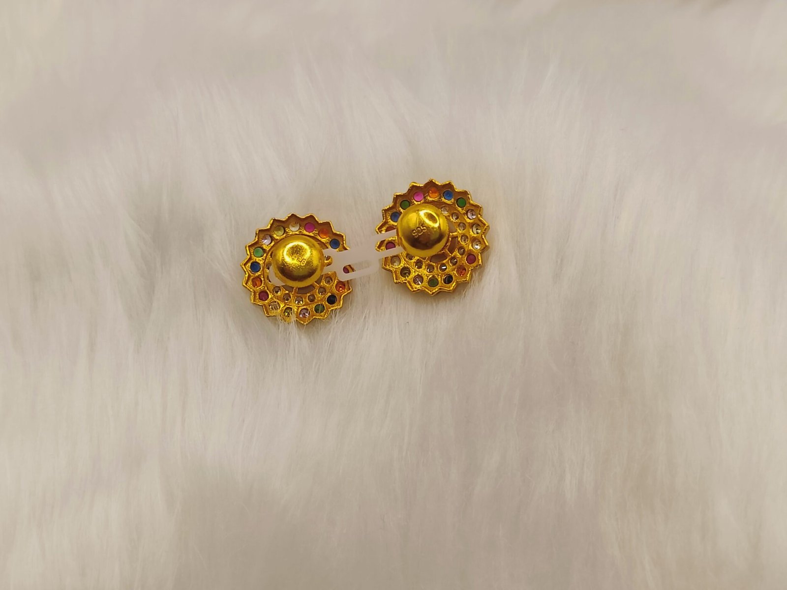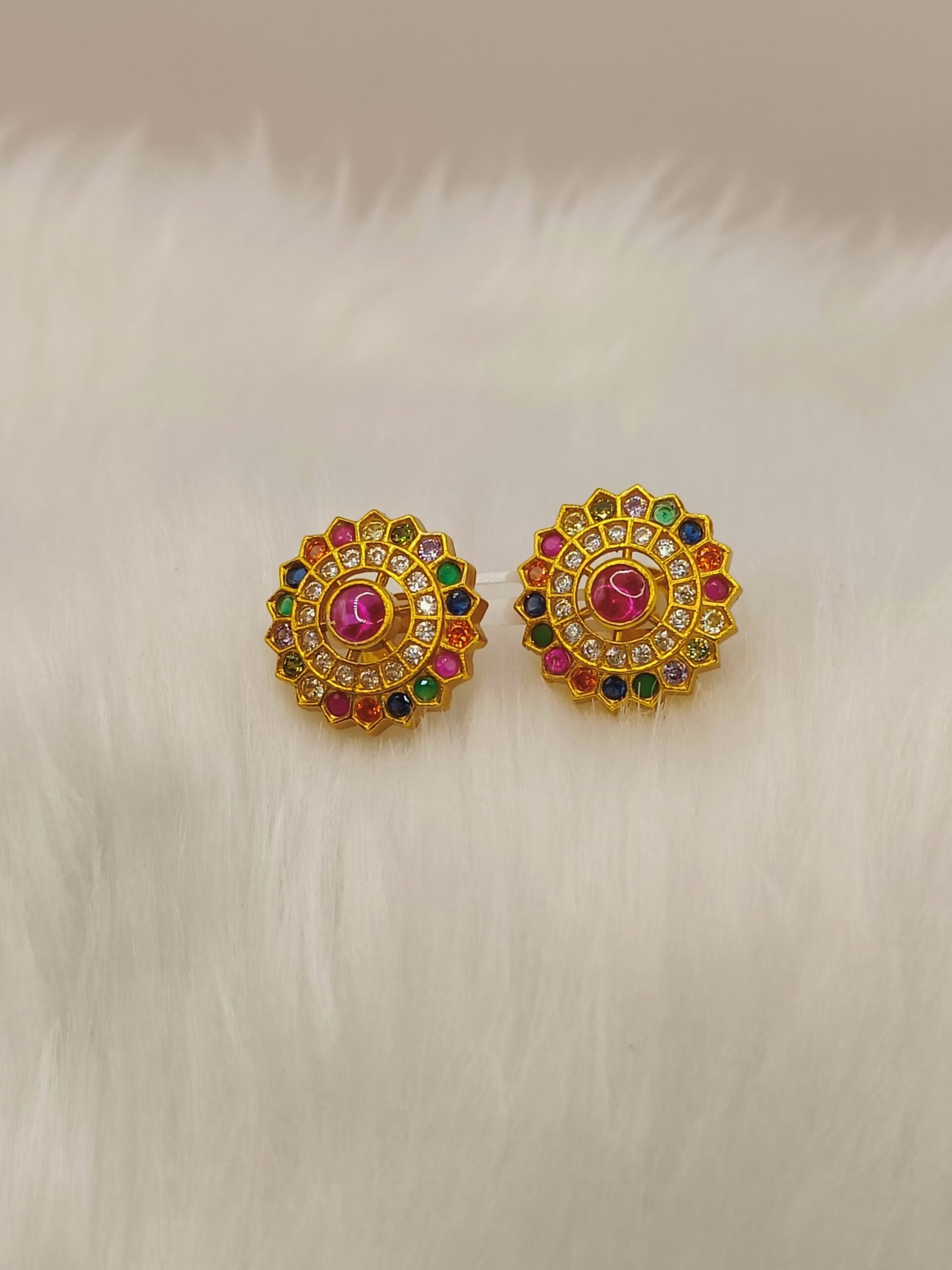 That is a gorgeous pair of stud earrings! The colorful stones set in a traditional design, combined with the “925 Gold coated” base, suggest a premium, ethnic style.