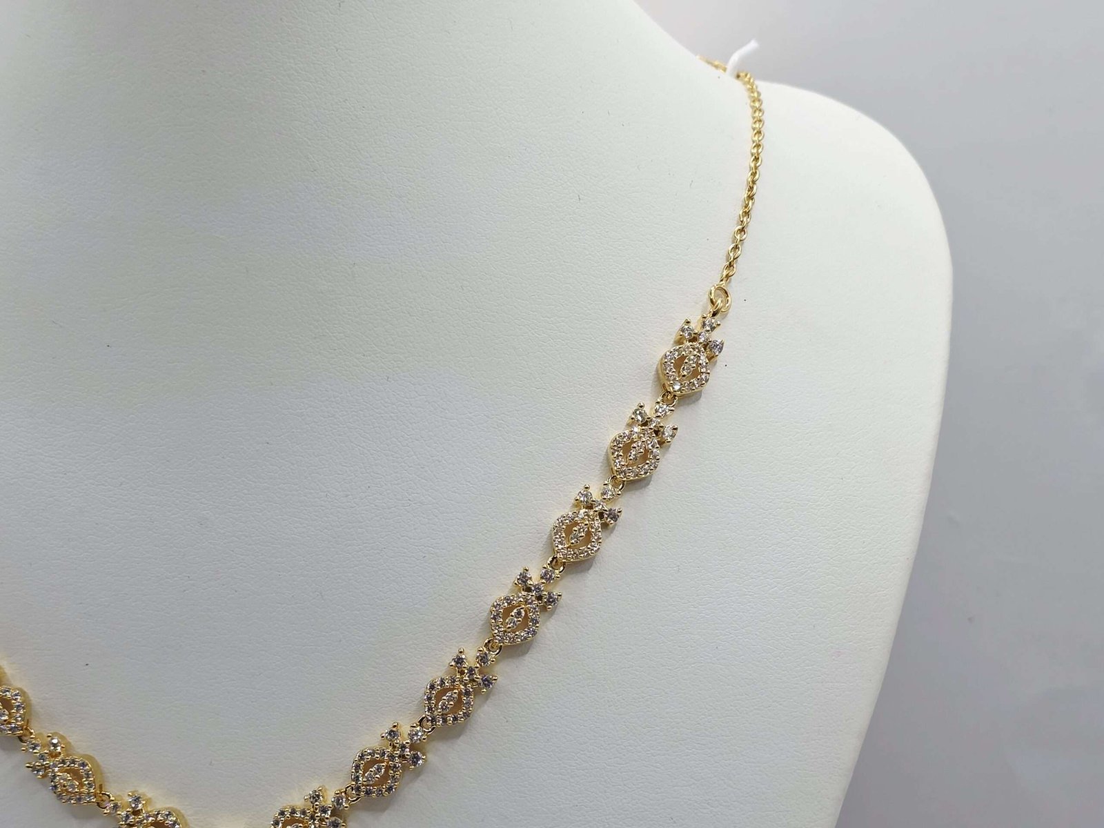 The Gold Plated Silver Shimmer Bloom Polker Necklace is a stunning blend of artistry and sophistication, designed to elevate your style for any occasion. With intricate craftsmanship and an eye-catching shimmer, this piece offers a fusion of luxury and versatility. Made for those who value classic elegance with a modern touch, the necklace is perfect for enhancing both everyday wear and formal ensembles.