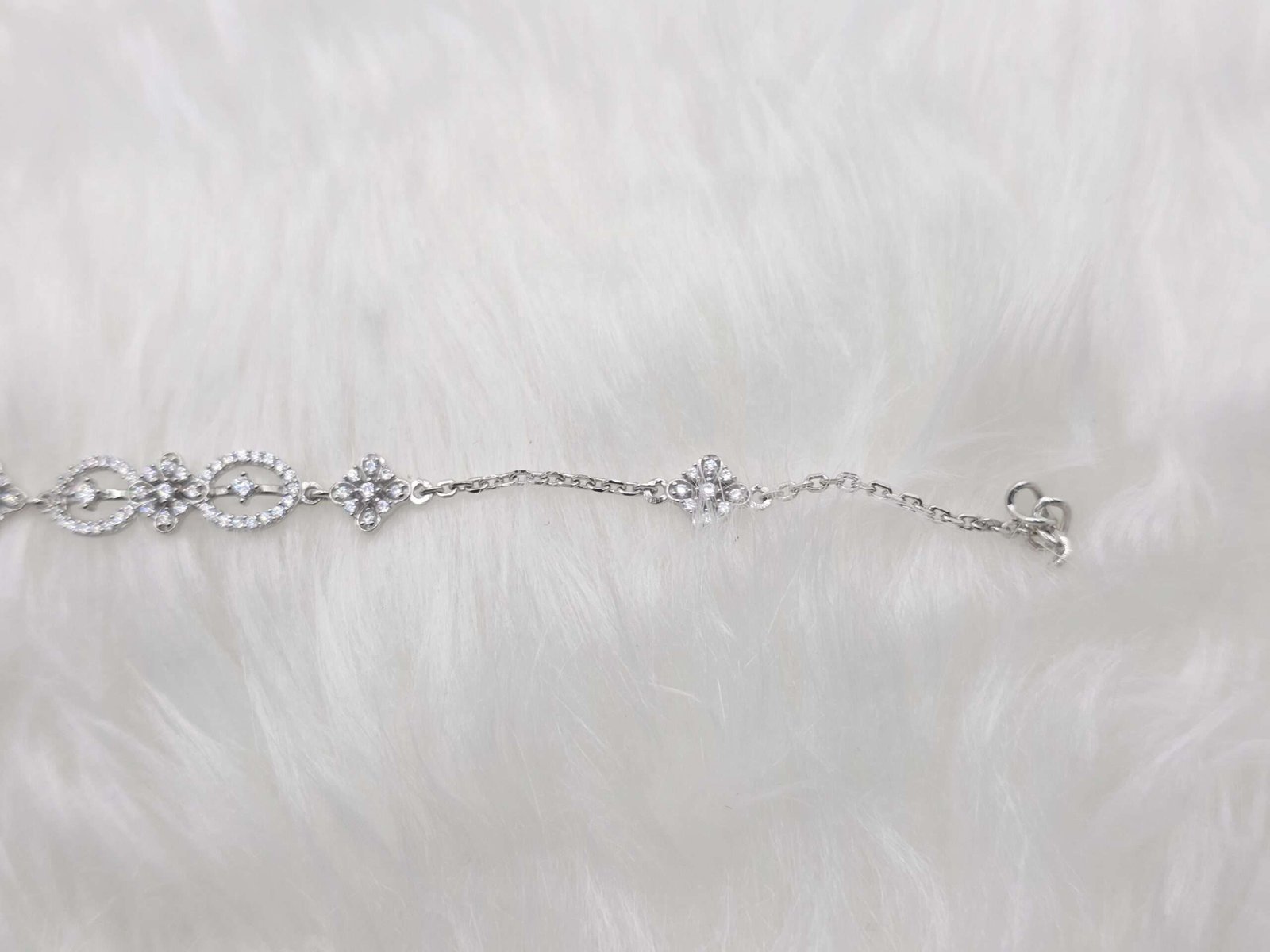 Elevate your style with this exquisite 92.5 Sterling Silver stone elegant bracelet, meticulously crafted to complement a lady’s graceful appearance. The bracelet demonstrates refinement and class, blending artisan-quality craftsmanship with modern sophistication. Made with genuine 92.5 sterling silver and embellished with gleaming stones, this accessory captures attention and exudes timeless charm.