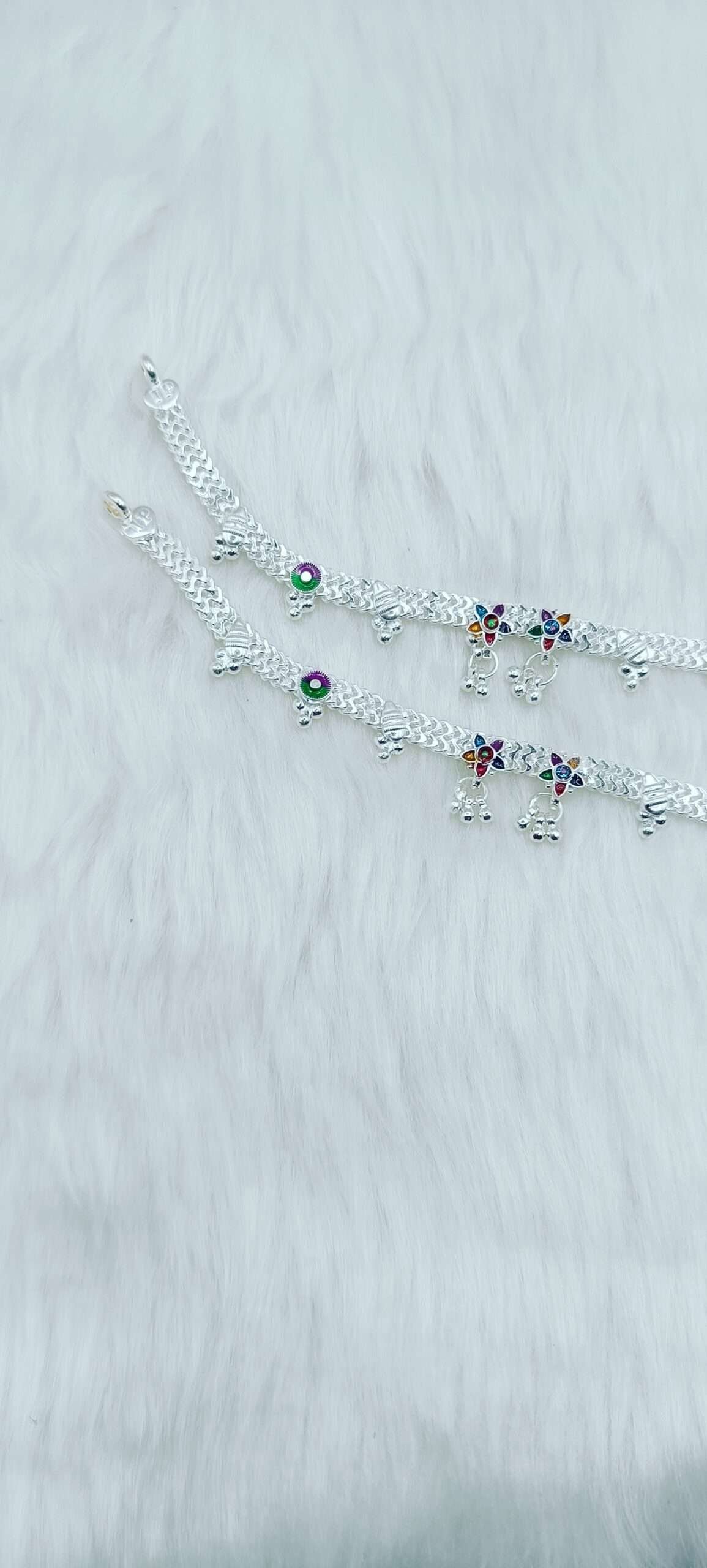 Our stunning silver payal for women, featuring intricate meena work, is designed to elevate your traditional jewelry collection. Crafted with care, each piece reflects an exquisite artistry that combines modern elegance with classic tradition.