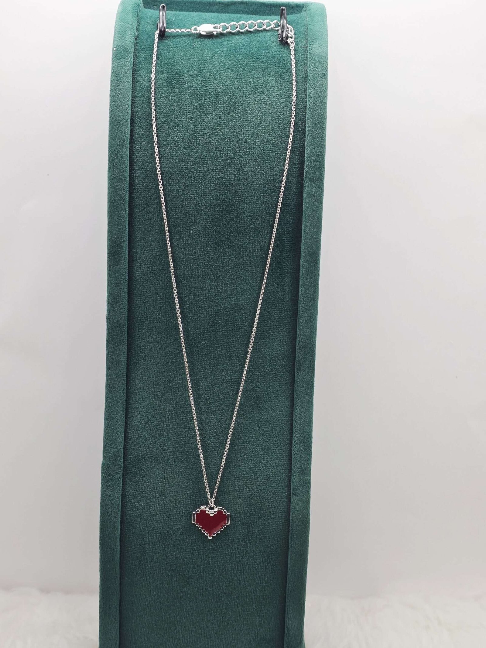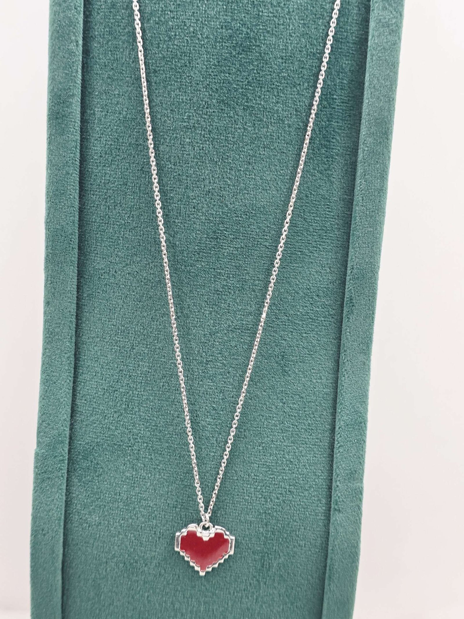 Crafted with precision, the 92.5 Silver Love Enamel Pendant Necklace showcases a stunning heart-shaped design adorned with a fine enamel finish. The 92.5 sterling silver ensures durability, brightness, and resistance to tarnishing, making this a long-lasting addition to your jewelry collection. Its lightweight nature promises all-day comfort, while the meticulous attention to detail makes it a standout piece in any jewelry box.