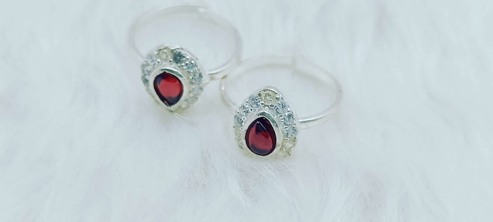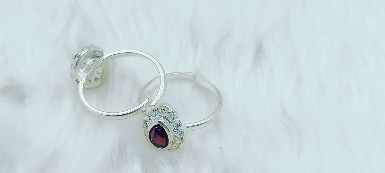 Discover the exquisite beauty of the red stone oval shape silver bichiya. This eye-catching accessory adds a touch of elegance to any attire, making it perfect for both casual and formal occasions. The deep red hue of the stone is beautifully complemented by the intricate silver design, creating a stunning piece that stands out.