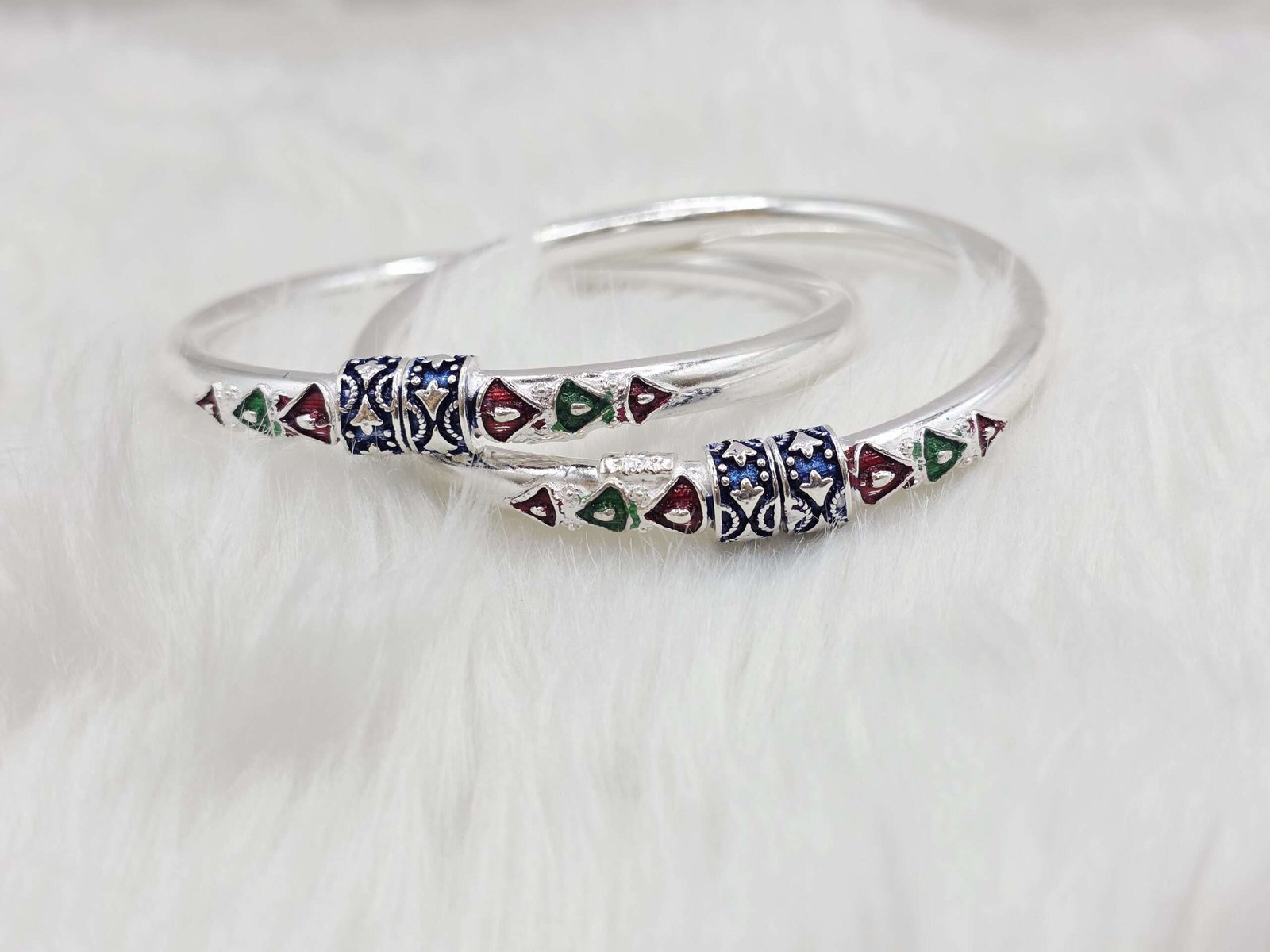 Discover the unmatched beauty of Silver Designer Meenakari Work Bangles today. Elevate your accessory game with this masterpieceâa true reflection of artistry and elegance.