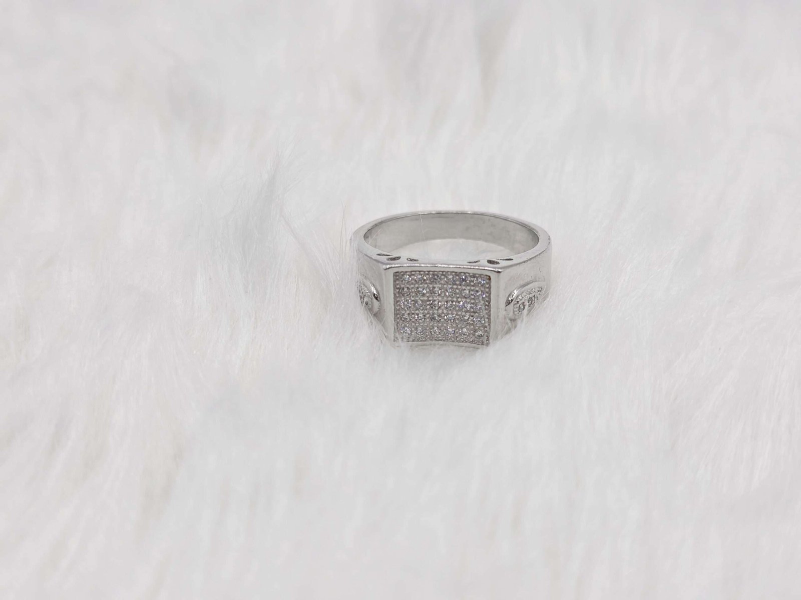 Elevate your style and indulge in sophistication with this exquisite Sterling Silver White Stones Gents Ring, a perfect harmony of premium materials and elegant design.