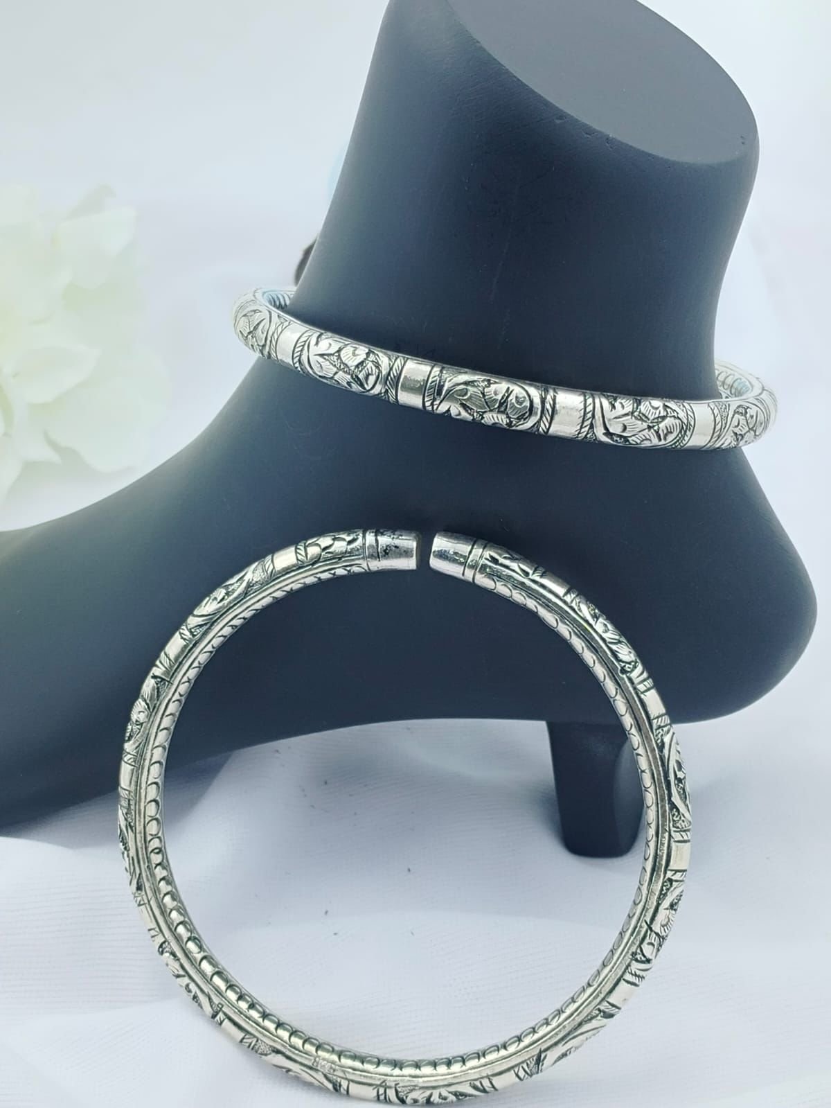 Discover the charm of the 925 Silver Oxidized Anklet Kada, a stunning piece that combines traditional aesthetics with a modern design. Perfect for daily wear or special occasions, this accessory adds an elegant touch to any outfit.