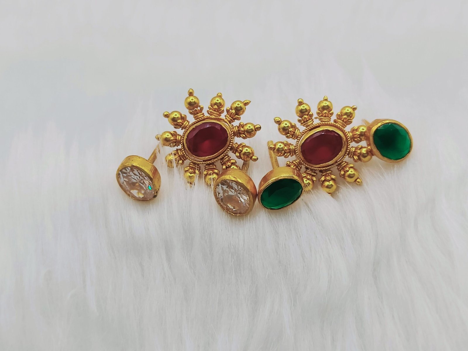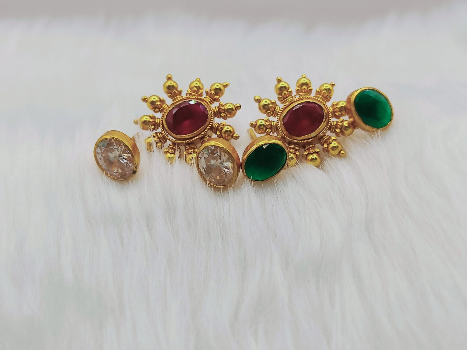 Elegant: Ruby & Emerald Inspired Temple Design Studs with Versatile Clear Drops